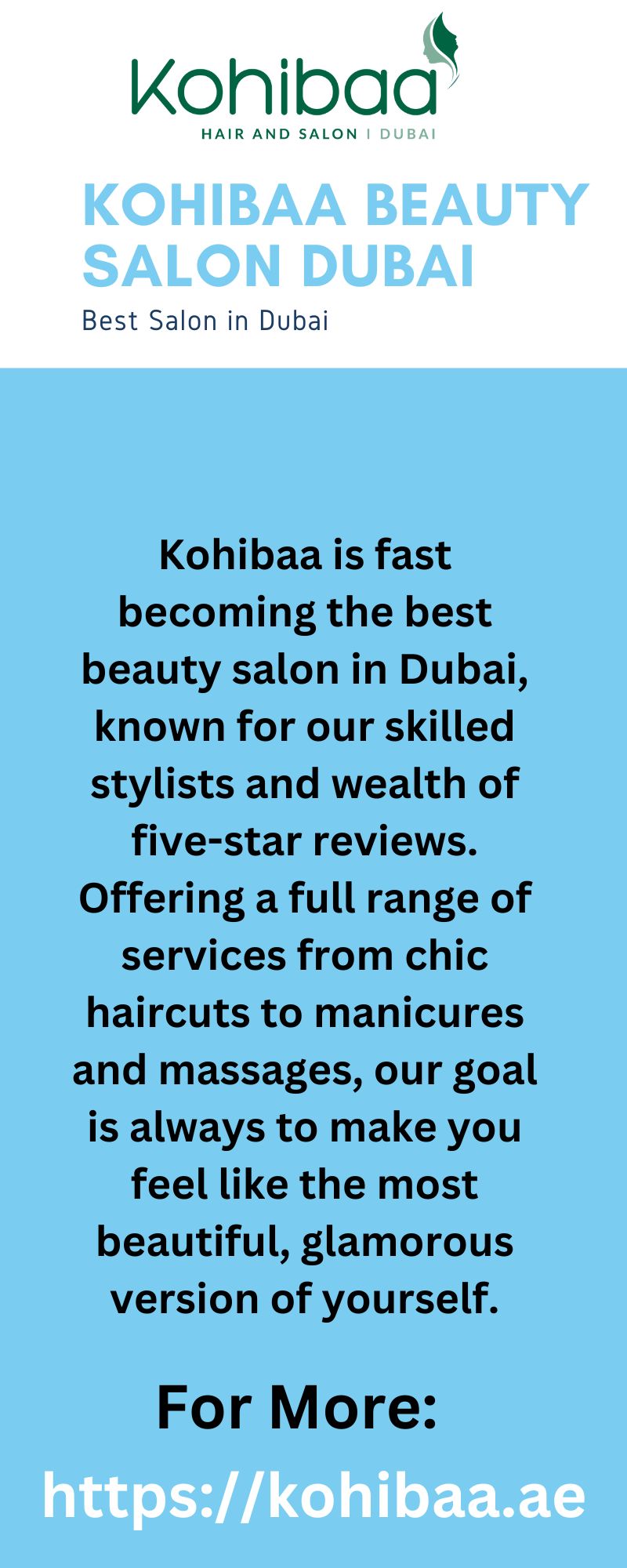 Kohibaa is fast becoming the best beauty salon in Dubai, known for our skilled stylists and wealth of five-star reviews. Offering a full range of services from chic haircuts to manicures and massages, our goal is always to make you feel like the most beautiful, glamorous version of yourself.